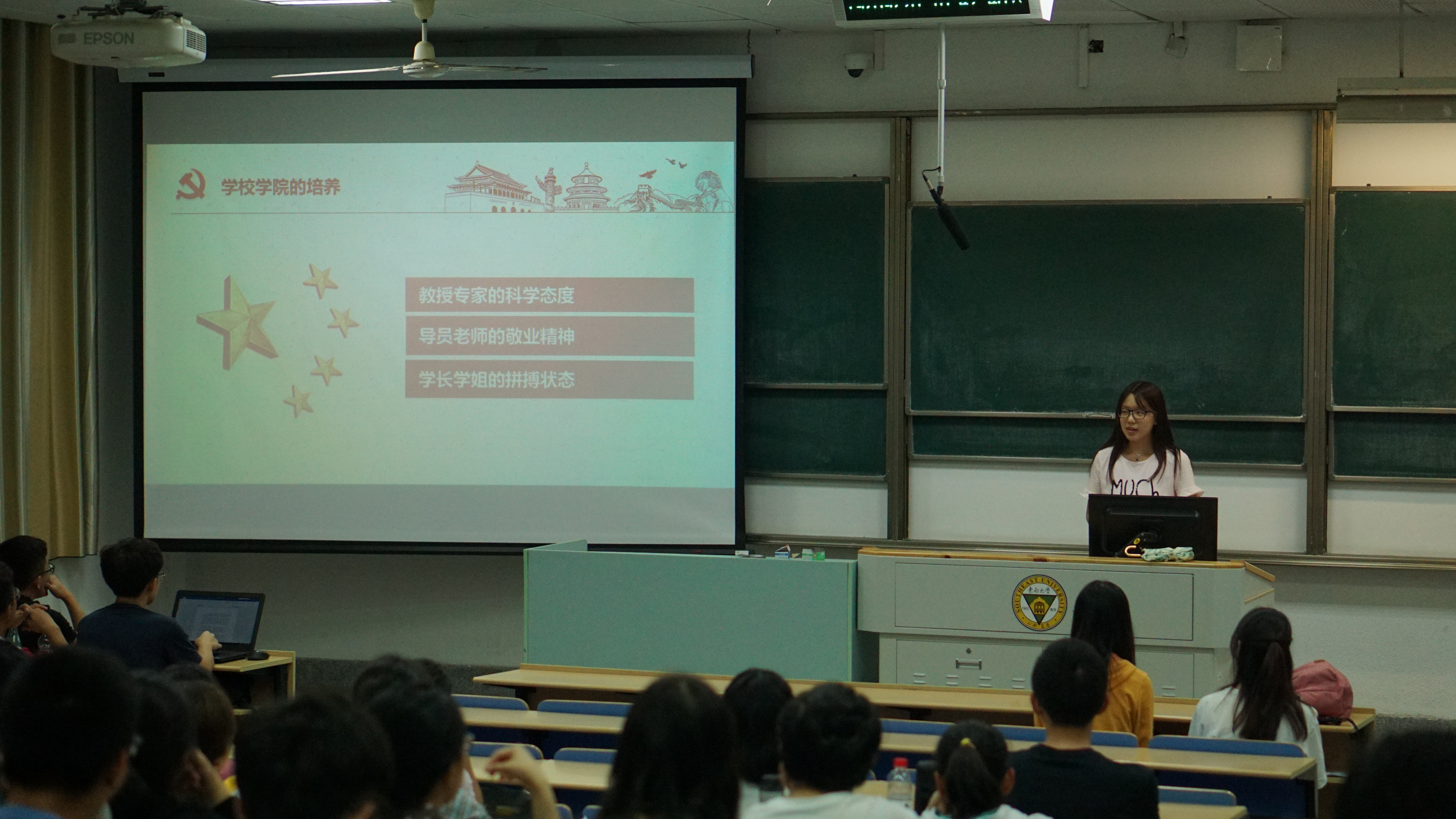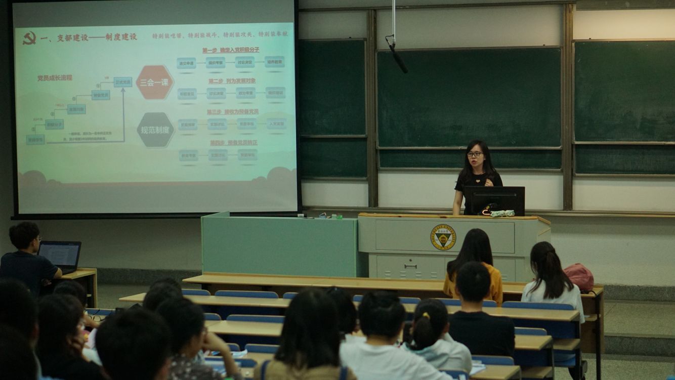 16级本科生党员李嘉懿向同学们介绍了本科生党员的大学生活。关心时事政治、学习政策方针、参与形式多样的党日活动等等,学生党员正是这样脚踏实地、积极进取,从而不断提高自身的思想理论水平,发挥先锋模范带头作用。