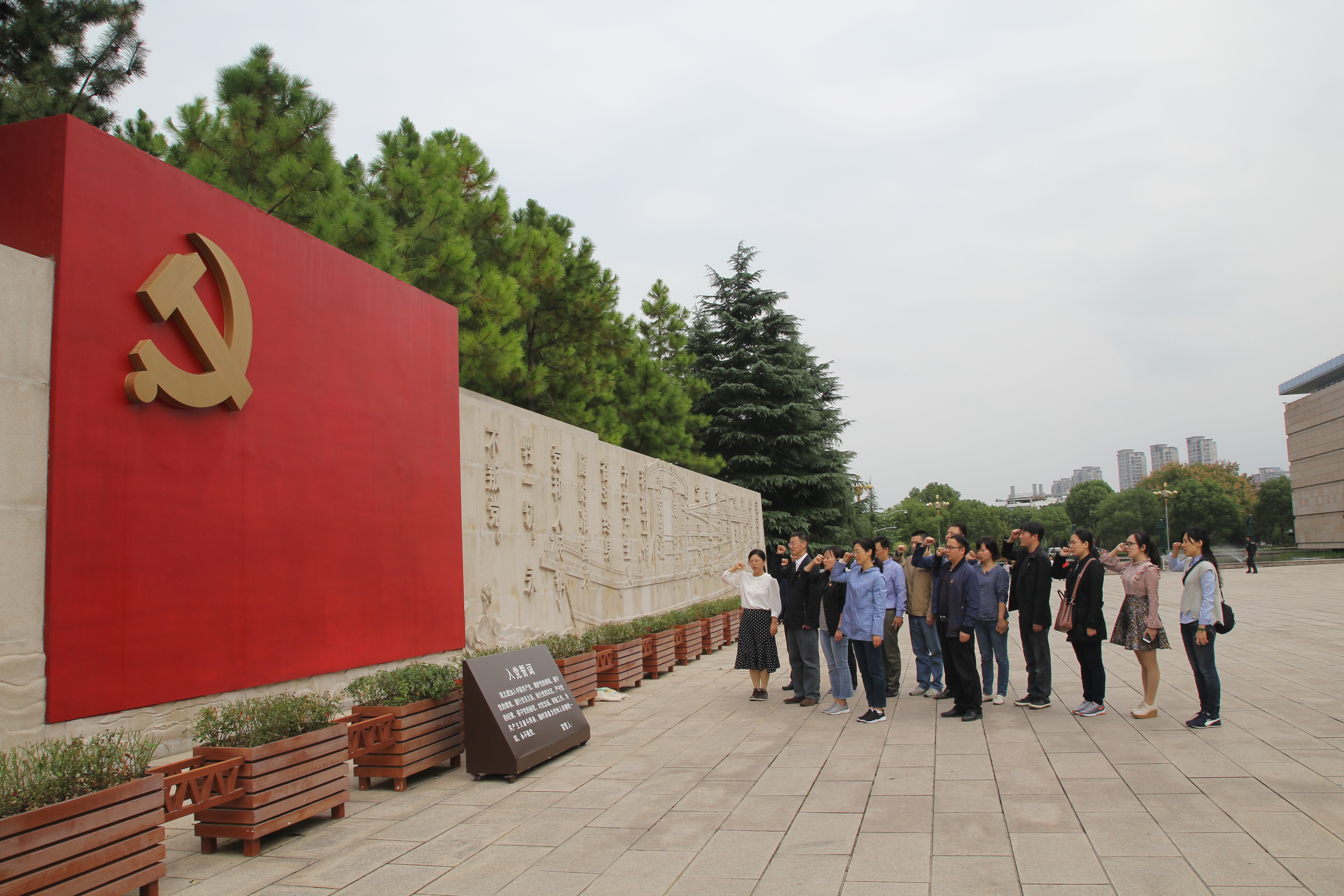 走进南湖革命纪念馆,一部波澜壮阔的历史画卷徐徐展开,大家随导览重温了风雷涌动的革命年代、激情燃烧的建设岁月,波澜壮阔的改革开放,直至风正帆悬的新时代征程。站在宏伟壮观的党章墙前,大家边学边交流,了解了中国共产党历次全国代表大会关于党章制定的完善及其现实指导意义,坚定了做党章的执行者和捍卫者的决心。最后,大家来到纪念馆北广场宣誓墙前,面对鲜红党旗,庄严郑重地举起右手,在王军书记的领誓下,重温了入党誓词,再度表达对党的热爱与忠诚。