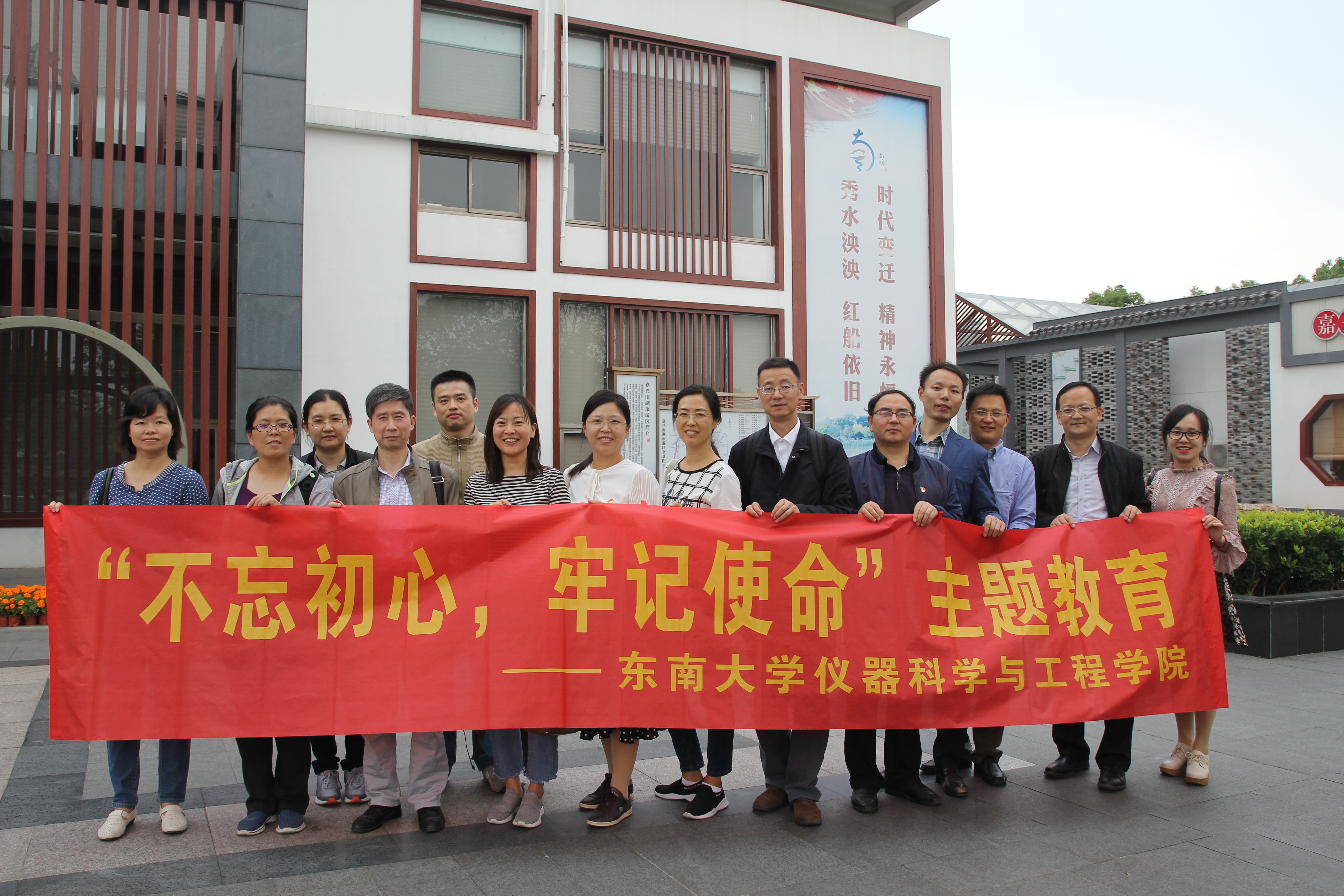 1013,根据学院党委“不忘初心 牢记使命”主题教育安排,学院领导班子、院长助理以及教工党支部书记、支委等一行17人在院党委书记王军带领下,前往嘉兴南湖,开展“不忘初心 牢记使命”主题教育现场学习,重温建党历史,追溯红色记忆。
