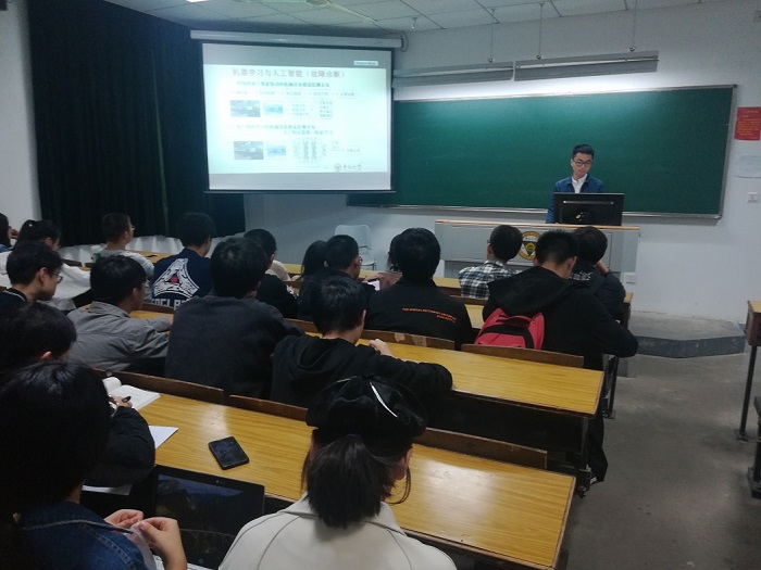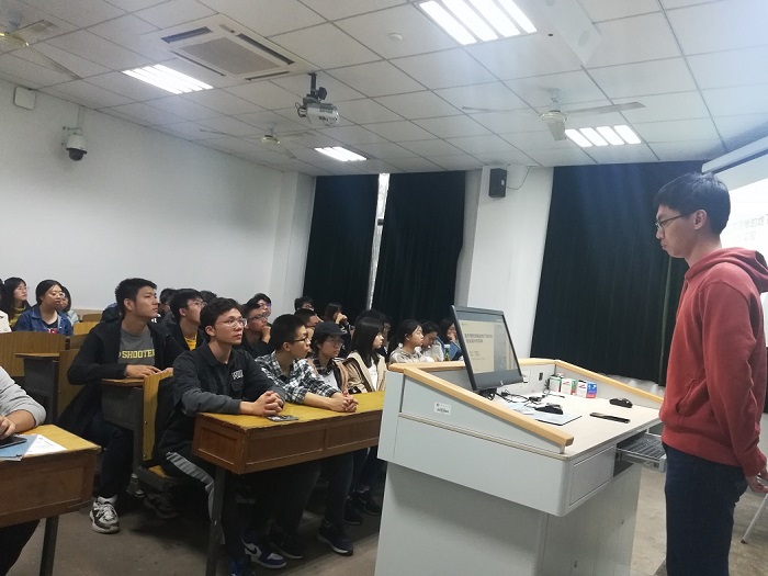 图为管旭辰学长向本科生介绍人工智能
