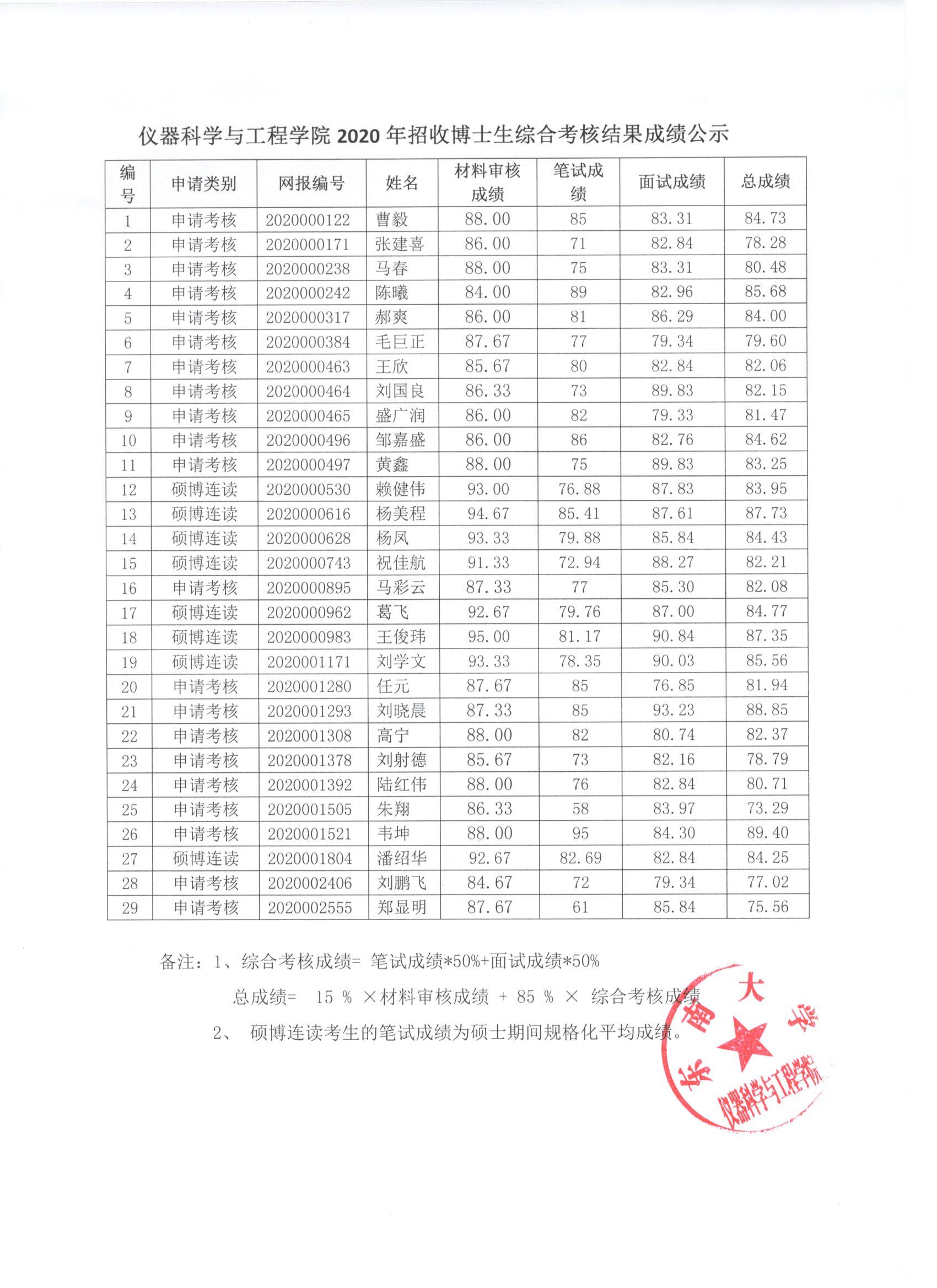 新葡的京集团350vip8888首页2020年招收博士生综合考核结果成绩公示