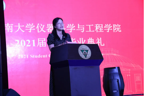 刘澄玉院长首先向全体毕业生致辞,对毕业生们顺利完成学业、即将踏上崭新的征程表示衷心的祝贺和诚挚的祝福,并向即将踏上新征程的仪科学子们提出了殷切期盼。