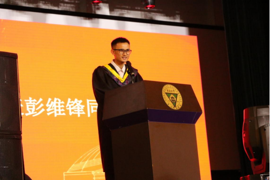 220173班彭维锋同学作为学生代表发言,深切表达对学校、老师、父母、同学们的感激之情,以及对仪科学院、同窗挚友的不舍之情。