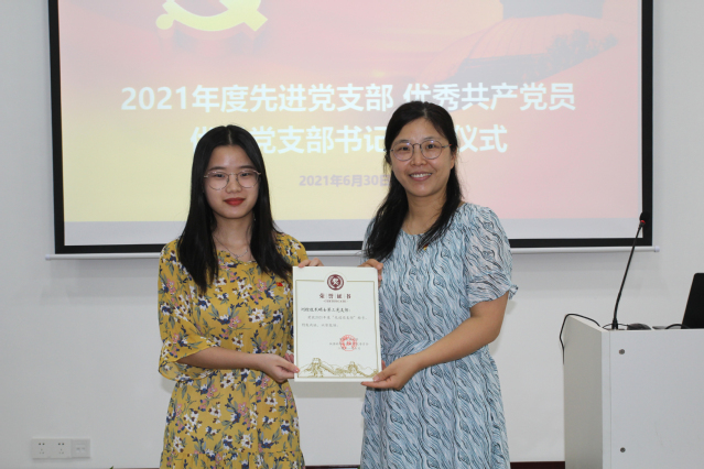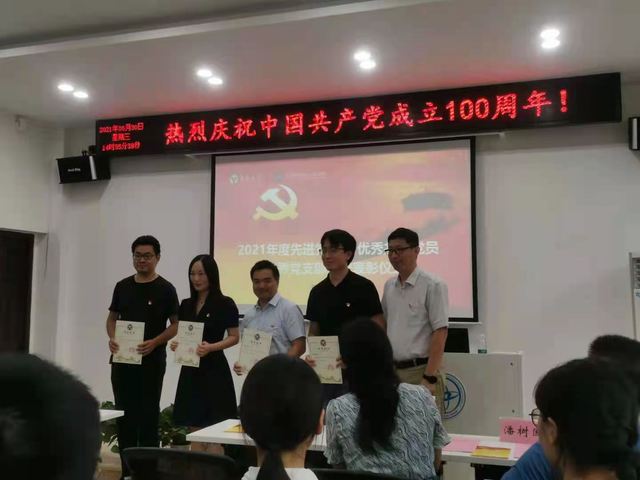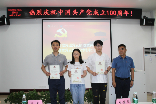 随后,举行了学院2021年度先进党支部、优秀共产党员、优秀党支部书记表彰仪式,院党委委员丁小丽、刘澄玉、潘树国同志为获表彰的集体和个人颁发了奖状。