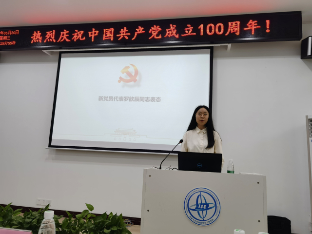 预备党员罗歆辰同志代表新入党党员向党组织庄严承诺,表示在日后的工作学习和生活中,将时刻以新时代合格党员标准严格要求自己,加倍认真地学习和工作,以实际行动践行自己的入党誓言,在奋斗中追逐青春理想,为实现“1-10-100”的东大梦和中华民族伟大复兴的中国梦贡献青春力量,无愧于共产党员的光荣称号!