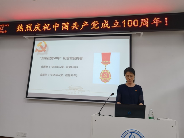为庆祝中国共产党成立100周年,致敬在党50年的老党员同志,6月30日下午,新葡的京集团350vip8888首页庆祝中国共产党成立100周年暨七一表彰主题党日活动在四牌楼校区中心楼130会议室隆重举行。学院在党50年的老同志、党政班子成员、师生支部书记,受表彰的先进集体和个人以及新发展党员参与了本次活动。活动由新葡的京集团350vip8888首页副院长、党委委员祝雪芬主持。