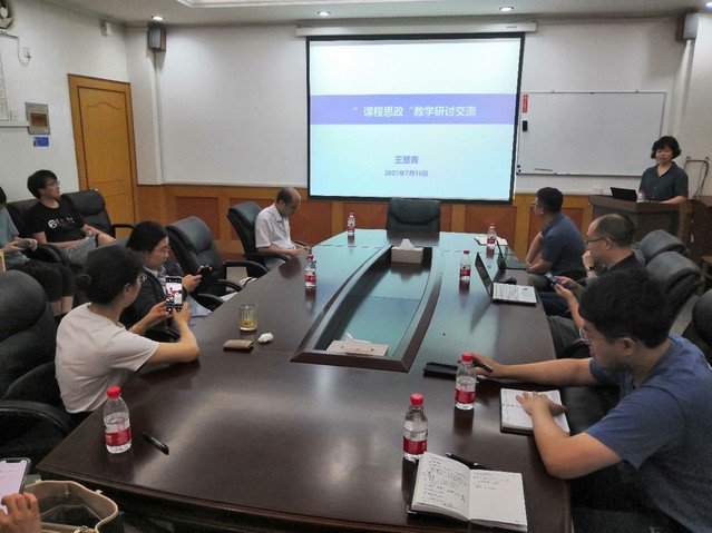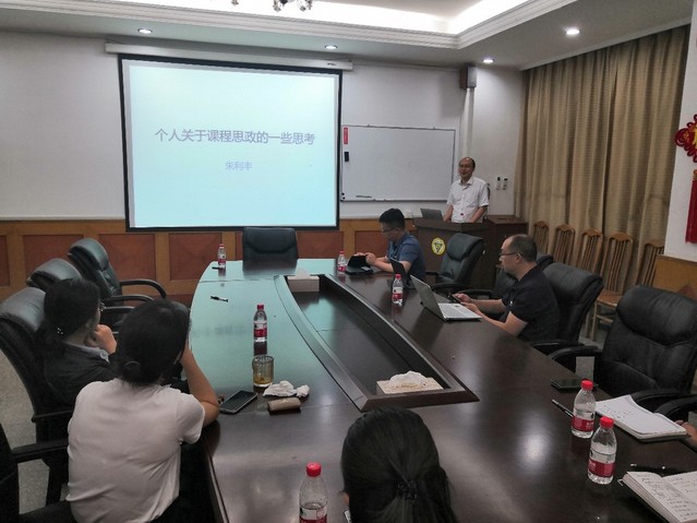 接着由王慧青老师和朱利丰老师分别就各自前期结题的课程思政项目与大家进行了交流。王老师首先给大家介绍了课程思政的由来及学校的相关政策,然后王老师以自己立项的项目为例,给大家分享了自己如何将课程思政的思想融入到平时的上课过程中。朱老师则就自己在完成学校课程思政项目过程中的一些感悟与大家进行了讨论和交流。
