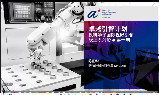本次系列论坛邀请了来自新加坡、英国、美国等国家地区具有仪器学科背景和近年成功海外经历的青年英才,与广大仪科学子和青年教师进行线上座谈交流。首场讲座邀请到的是来自新加坡科技研究局科学家、实验室主任陈正华博士,学院主持工作的副院长刘澄玉老师主持了本场讲座。