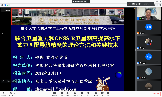 2022年3月11日晚8点 ,仪科学院举办了三十周年院庆系列学术报告第三场次,本次邀请到了中国空间技术研究院钱学森空间技术实验室首席研究员郑伟教授。