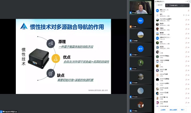 袁洪研究员围绕多源融合导航定位的热点研究方向,从“多源融合导航概念与效能”、“微惯性技术和通信的作用”、“全源导航与多源融合导航”、“多源融合导航的产业价值”等几个方面分享了研究心得和前沿展望,并与参会人员就综合PNT系统建设、各类传感器定位特性及融合定位的完好性问题等作了深入交流。