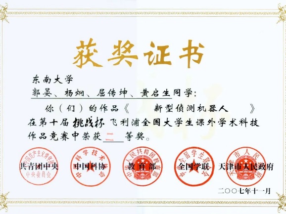 2007 | 《新型侦测机器人》 | 二等奖 |