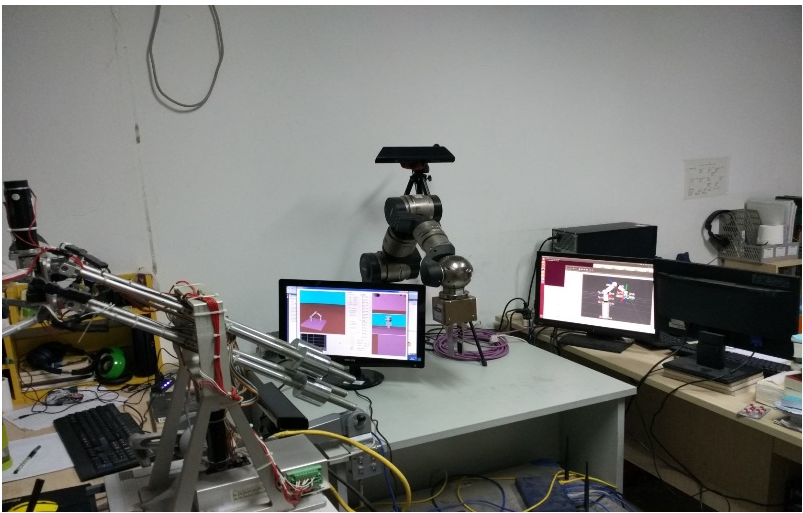 李:时延问题是遥操作机器人系统控制面临的一个主要困难。为了消除或减小时延对机器人系统的影响,提高系统的操作性能,最早人们采用“移动-等待”的策略,即在操作过程中先移动一小步,等待一段时间得到力反馈后,再移动一小步。采用这种方法的结果是降低了系统的工作带宽,造成了力信息的模糊性,加重操作者的负担。为此,人们从控制的角度提出了许多解决方案,通过采用合理的控制算法控制遥操作系统主端和从端的力和位置信息,但是时延问题一直未能很好地解决,尤其大时延问题困难重重。因此,我们研究团队提出了基于虚拟预测环境的遥操作机器人控制方法。操作者根据建立在本地的从机器人及其工作环境的虚拟模型,通过交互设备操纵虚拟机器人,虚拟环境根据命令执行情况计算交互力,更新位置信息,并实时反馈给操作者。由于操作者与虚拟环境之间不存在时延,虚拟环境可以为操作者提供实时、稳定的视觉和力觉反馈,从而消除了时延对遥操作系统的影响。从理论上讲,这种方法应用前景更广,效果也更好。我们团队对机器人的虚拟预测环境建模技术、虚拟环境模型的在线修正技术等进行了理论和实验研究,相关成果为嫦娥三号探测车、空间站机械臂遥操作等提供了技术支持。