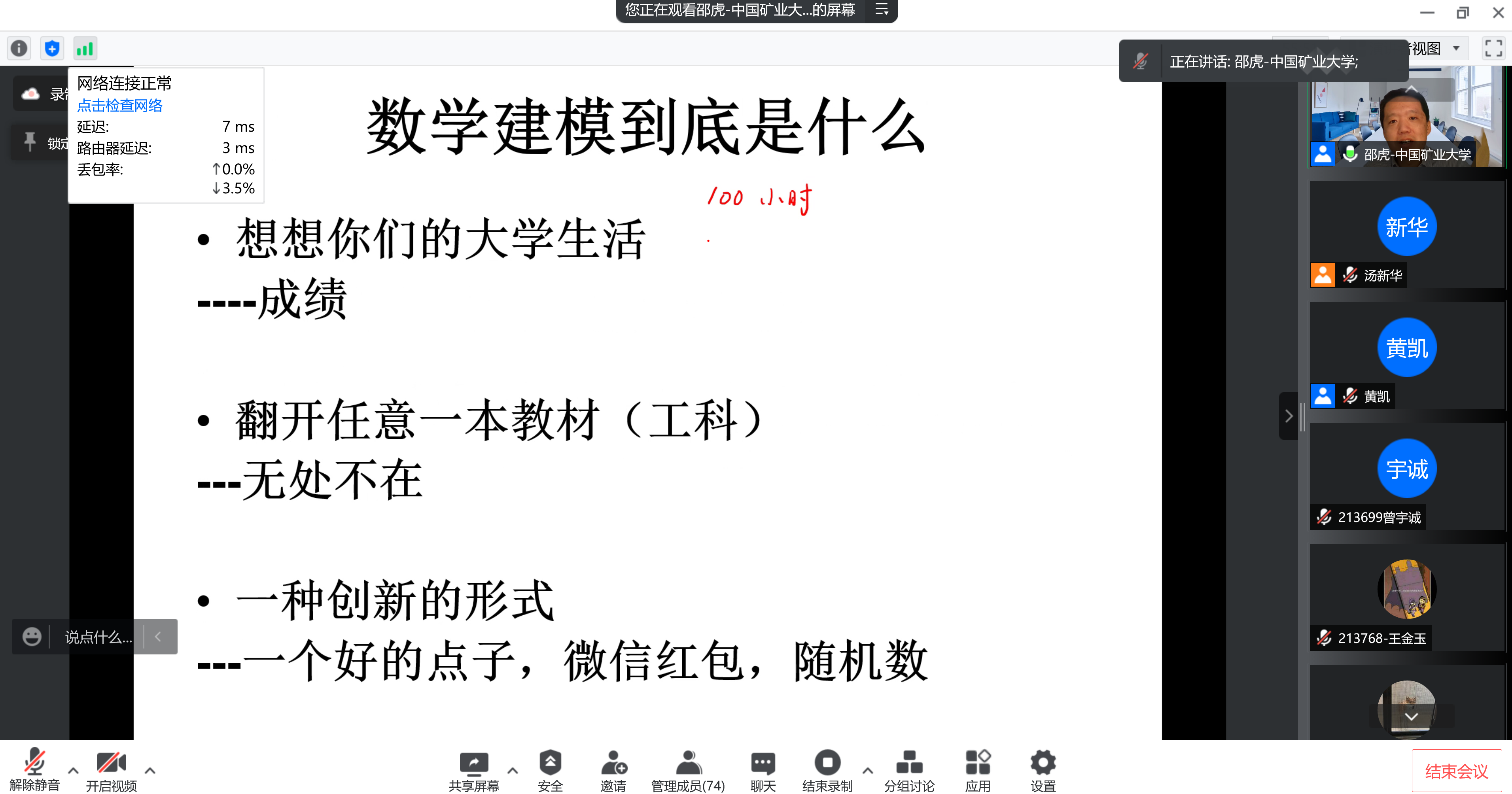 2022年5月6日晚20:00,仪科学院举办了三十周年院庆系列学术报告第十八场次,本次邀请到了中国矿业大学数学学院邵虎教授分享其在“数学建模与数学建模竞赛”相关认识和竞赛经验。