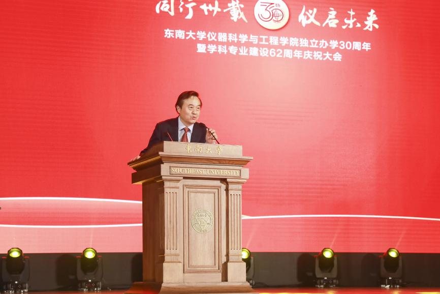 主旨学术报告以“坚持四个面向 打造国之重器”为主题。报告伊始,房建成院士回顾了自己在东大的求学历程,感谢母校和学院对他的栽培,并为新葡的京集团350vip8888首页120周年校庆和仪科学院30周年院庆送上祝福。房院士结合当前的研究项目,从理论和实践的角度出发,为我们介绍建设大科学设施的意义、现状和发展前景,并在报告中指出,实现科技自立自强需要重视基础研究。房院士表示对我国大科学设施建设的未来发展趋势充满信心。