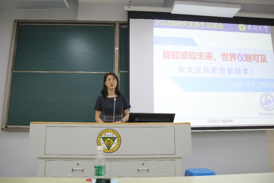 王军书记代表学院向2022级研究生新生致欢迎辞。王书记对新生的到来表达了热烈的欢迎及祝贺,并以“智能感知未来,世界仪触可及”为主题向同学们介绍了学院发展历程、学科水平师资力量、学院科研成果、未来发展趋势等内容。同时王书记向新同学提出了三点寄语:“心大”,心怀远大抱负,勇挑时代重担;“志坚”,坚定内心意志,方能通往成功;“体勤”,拒绝拖延懒惰,实现自我勉励。此外,她强调,作为高校学生要具备国家安全意识,恪守保密相关要求。