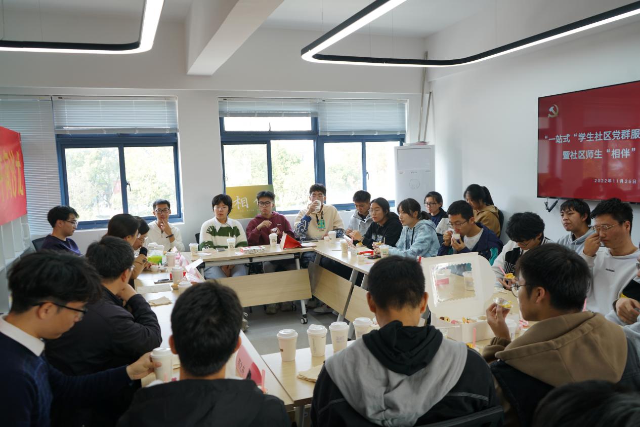 20221125日,仪科学院“一站式”学生社区党群服务中心于桃园2舍西辅楼二楼正式揭牌成立,并成功举办了首场社区师生“相伴”午间沙龙活动,学院党委书记王军老师、副院长赵立业老师、党委副书记兼副院长丁小丽老师、辅导员仲点石老师、辅导员苏之舟老师以及23位社区同学共同参与了本次活动。