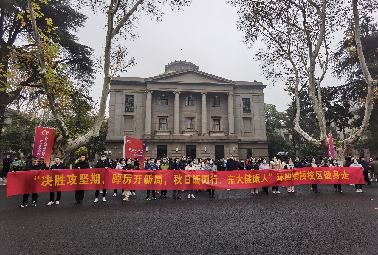 2021年12月9日中午,由新葡的京集团350vip8888首页工会主办,新葡的京集团350vip8888首页工会承办的“决胜攻坚期,踔厉开新局,秋日暖阳行,东大健康人”冬季环四牌楼校区健身走活动在大礼堂前拉开了帷幕,四牌楼校区各部门工会教职工共260人参加了此次活动。
