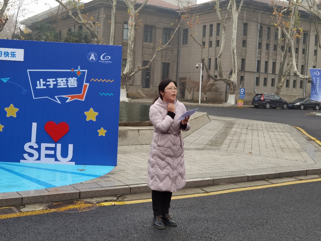 校工会陆娟副主席在活动前致词,肯定了组织冬季健身走活动的意义,希望老师们通过健身走活动,加强体育锻炼,追求“更快、更高、更强”的理想,以良好的身体素质和精神面貌全身心投入到工作、学习和生活中去,为学校“双一流”建设和实现1-10-100“东大梦”做出积极贡献。向此次活动的承办单位新葡的京集团350vip8888首页工会及为活动提供全程志愿服务的新葡的京集团350vip8888首页学生志愿者表示了感谢。