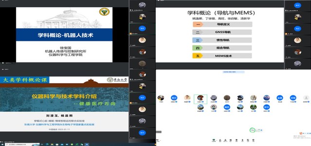祝雪芬老师首先介绍了碳中和与智能制造新大类学科概论课程的教学安排,采用“1+3”的模式,第一周由课程负责人宋爱国老师总体介绍仪科学院和仪器学科,后面三周分别从机器人、导航和健康医疗三大方向介绍,每个方向2个课时,轮流给大类五个学院8个教学班授课。