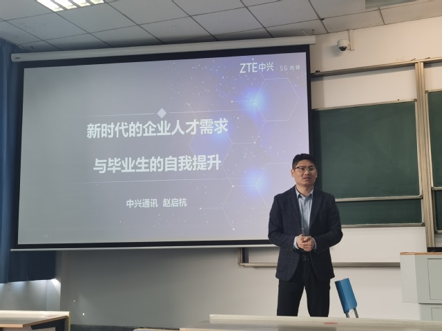 讲座中,赵总监介绍了中兴通讯公司作为中国通讯界的龙头企业的基本情况。公司始终把“让沟通无处不在”作为自己的企业宗旨,秉承“网络联接世界,创新引领未来”的使命理念,为中国乃至世界的通讯科技发展做出了突出贡献,改变了我们每个人的生活。