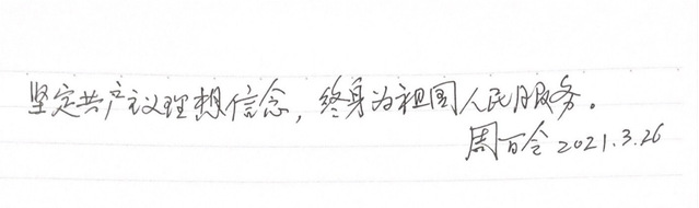 周:学好当下,成就未来。因为你们现在毕竟还是学生,学生的首要任务就是要把学习搞好,这个学习是包括各个方面的,学好本领后才能做出成绩,为国家建设做出贡献。