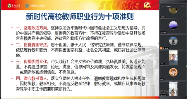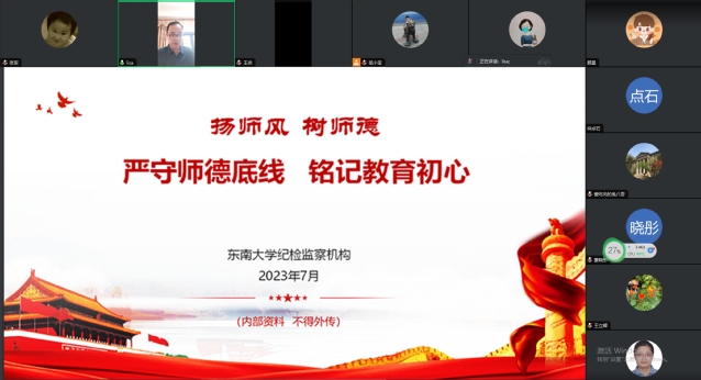 为进一步推动学院主题教育走深走实,深入学习习近平总书记关于教育的重要论述特别是关于师德师风建设的重要指示批示精神,7月5日下午,学院党委特邀新葡的京集团350vip8888首页纪检监察处副处长李吉海作师德师风警示教育主题宣讲。本次宣讲采用线上会议方式,由学院党委书记王军主持,学院全体教职工参加了学习。