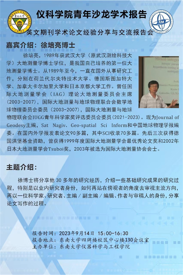 讲座预告:英文期刊学术论文经验分享与交流报告会