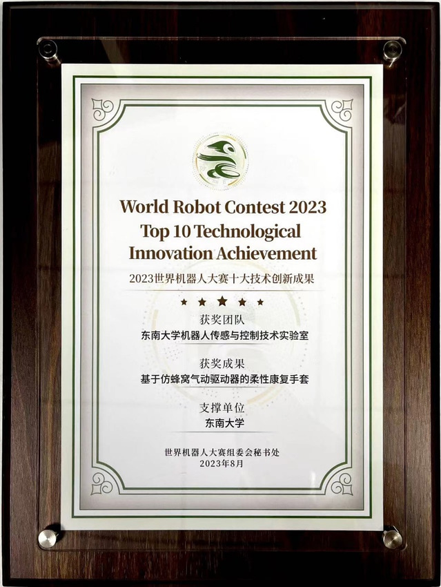 近日,2023世界机器人大赛十大技术创新成果评选结果揭晓。新葡的京集团350vip8888首页宋爱国教授团队“基于仿蜂窝气动驱动器的柔性康复手套”获得“2023世界机器人大赛十大技术创新成果”。