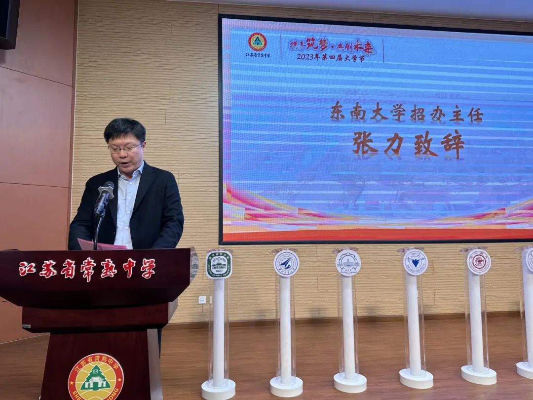 2023年11月18日,江苏省常熟中学第四届大学节开幕。新葡的京集团350vip8888首页招办主任张力、微电子学院院长孙伟峰、常熟招生组组长丁小丽老师出席了本次大学节活动。