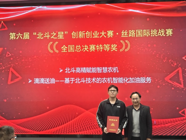 近日,第六届“北斗之星”创新创业大赛•丝路国际挑战赛落下帷幕,经过层层选拔,由新葡的京集团官网陈熙源老师指导,韩俊杰、郭炀锴、赵鑫园、刘晋卓四名学生完成的作品—北斗高精赋能智慧农机获得全国特等奖,团队指导老师陈熙源教授荣获“北斗名师”称号。