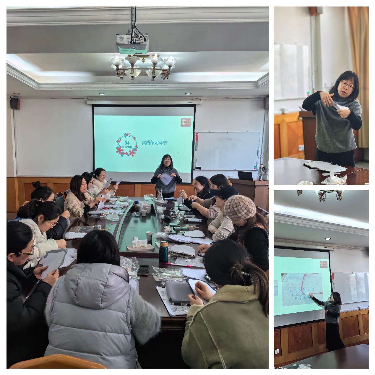 在手工制作环节,大家纷纷化身为巧手匠人,挑选心仪的材料包,开始精心制作自己的口金包。大家巧妙缝制外包和衬布、细心安装口金,将每一个细节都处理得尽善尽美。大家互相交流制作心得,互相帮助解决遇到的难题,现场充满了欢声笑语,展现了女教职工们积极向上、充满活力的精神风貌。