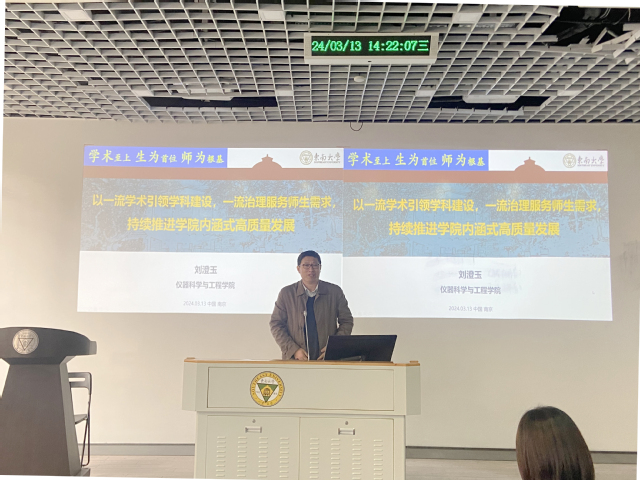 接着,学院其他领导分别进行了述职述廉,在简要回顾2023年各项工作的基础上,结合巡视整改,报告了2024年的工作要点。学生工作方面,丁小丽副书记表示,将进一步关注学生心理健康,加强就业、竞赛和实践育人工作,重点推进学院官网官微内涵式提升,围绕“学术年”讲好仪家故事。本科生教学工作方面,祝雪芬副院长向全院教师再次强调了“课比天大”的责任要求,表示将进一步加强课堂教学质量监管力度,高标准迎接新一轮本科教育教学审核评估,全面提升学院第一课堂教学质量。科研工作方面,潘树国副院长表示,继续做好重大项目、重要科技奖项申报工作的同时,将重点加强科研团队和平台建设,另外希望学院老师还要关注高质量成果转化、科研经费合法合规使用以及实验室安全。