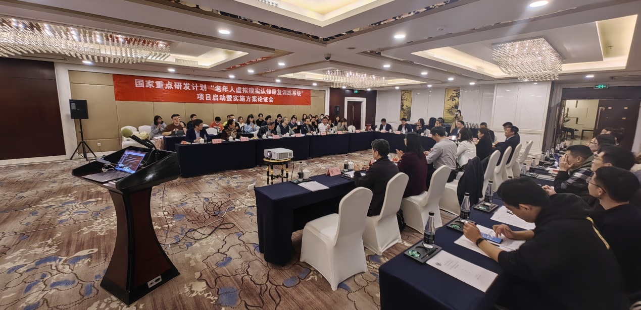 据悉,“老年人虚拟现实认知康复训练系统”项目于2023年12月立项,下设5个课题。项目由新葡的京集团350vip8888首页牵头,协同南京中医药大学、南京医科大学第一附属医院、北京津发科技股份有限公司、中国科学技术大学、南京医科大学、南方科技大学、南京脑科医院、青岛虚拟现实研究院有限公司、北京京东拓先科技有限公司等9家单位共同开展研究工作。项目旨在构建闭环、精准、自适、个体化的老年人虚拟现实认知康复训练系统,促进老年人主动参与早期筛查和康复训练,具有重要的临床意义和社会价值。此次会议的举行标志着国家重点研发计划“老年人虚拟现实认知康复训练系统”项目的正式启动,并为项目的实施与推进奠定了坚实基础。