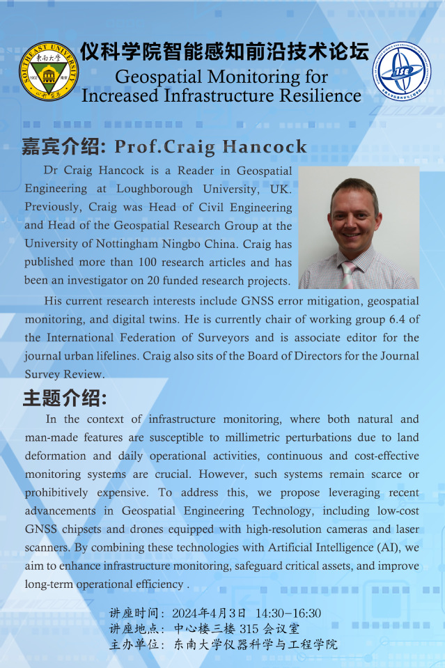 讲座预告:Geospatial Monitoring for Increased Infrastructure Resilience