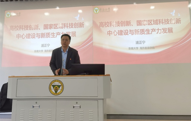 讲座中,浦教授以《高校科技创新、国家区域科技创新中心建设与新质生产力发展》为题,重点围绕新质生产力的定义与内涵、新质生产力的现实与国家区域科技创新中心的建设和高校科技创新的使命与担当等三个方面进行介绍,他指出,科技创新是新质生产力发展的核心要素,而高校作为科技第一生产力、人才第一资源、创新第一动力的重要结合点,是发展新质生产力的重要力量,是新质生产力的策源地、孵化地。最后,蒲教授通过分析高校在国家区域科技创新中心建设中的作用,点明了高校科技创新走好向之路的具体方向。