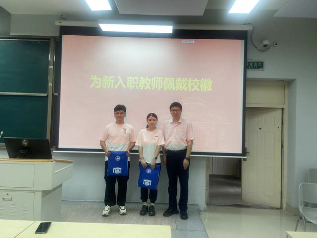 大会伊始,学院还为新入职教师马煜城、马彩云举行了简单的欢迎仪式,刘澄玉院长为其佩戴校徽,并赠送了入职礼物。(图:吴紫芯 文:王蓉)