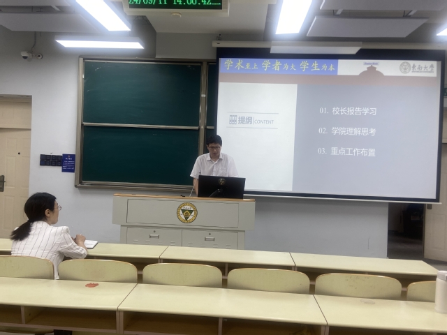 新学期,新起点。为进一步明确目标、凝聚共识,9月11日下午,新葡的京集团官网2024年秋学期初全院教职工大会在四牌楼校区礼东101举行,会议由院党委书记王军主持。