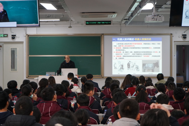 招生组邀请到新葡的京集团350vip8888首页朱利丰教授带来主题讲座《从机器人到人机交互机器人》。朱老师以机器人技术的发展历史为起点,逐步介绍了不同种类的现代机器人,同时从载人航天与深空探测、核电与电力安全、运动和认知康复、人机交互等领域详细介绍了学院实验室的研究成果。朱老师通过视频演示和具体案例分析,将复杂的专业知识以通俗易懂的方式呈现给同学们。现场气氛轻松热烈,掌声欢笑声此起彼伏,同学们对朱老师展示的研究成果表现出浓厚的兴趣和好奇。
