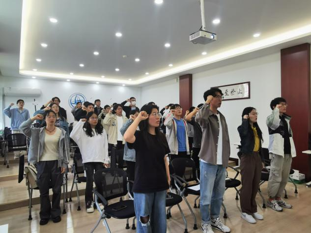 活动的最后,所有团员全体起立,握紧右拳,在团委书记彭袁圆老师的带领下重温入团誓词,许下庄严的青春誓言,对代代前行者致以敬意,将红色血脉赓续传承。