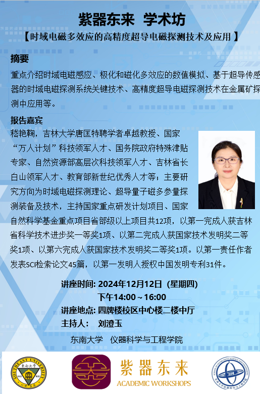 讲座预告:时域电磁多效应的高精度超导电磁探测技术及应用