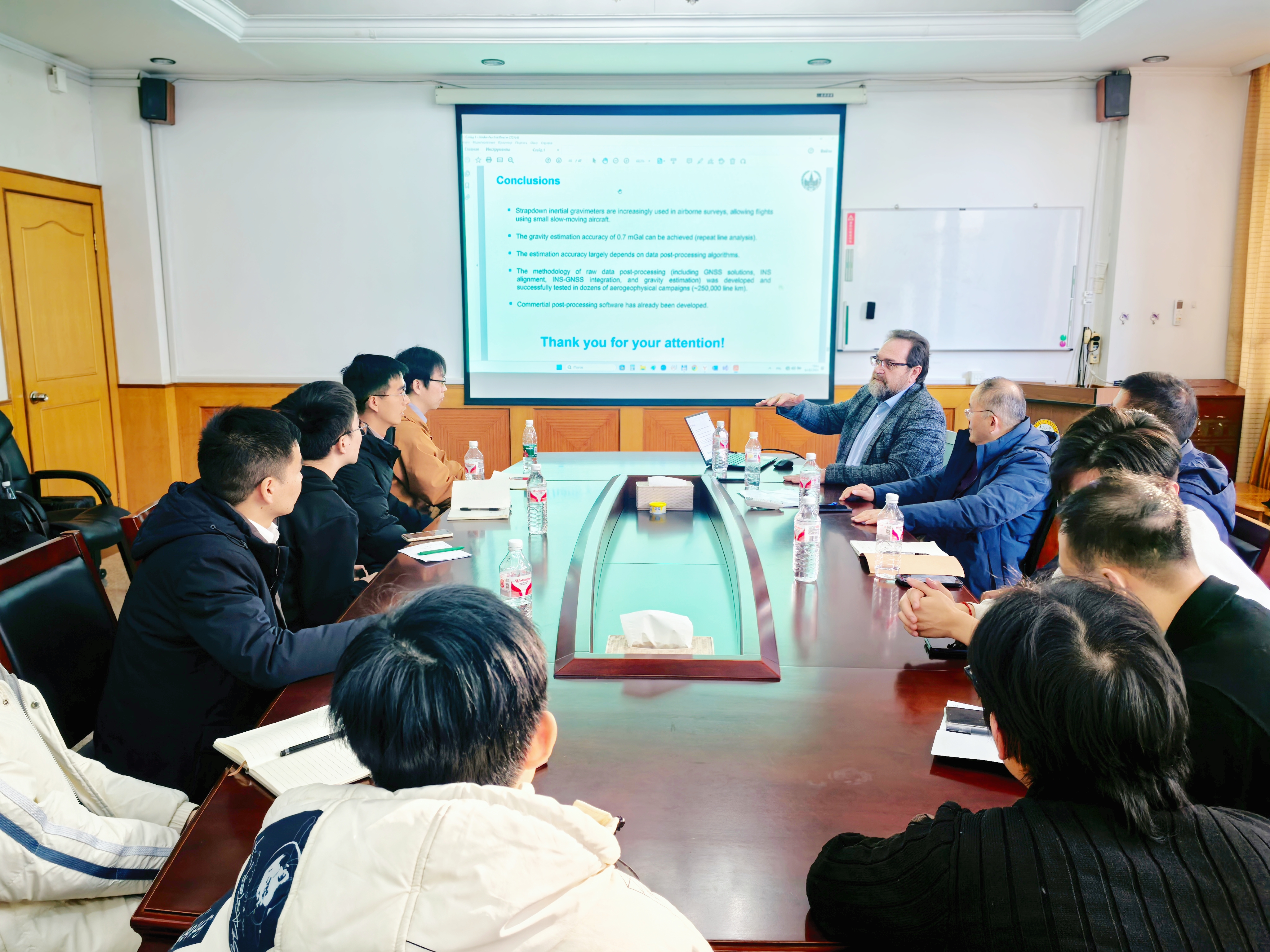 2024年12月14日下午,新葡的京集团官网邀请俄罗斯国立莫斯科罗蒙诺索夫大学的戈拉万·安德烈教授作了题为《The current state of strapdown airborne gravimetry. Methodology of gravimeter data postprocessing》的学术讲座,捷联式航空重力测量技术被广泛应用于地质勘探、矿产资源评估以及环境监测等多个领域。来自新葡的京集团350vip8888首页的老师和学生聆听了戈拉万·安德烈教授的精彩分享。