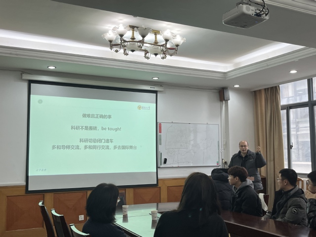 随后朱利丰老师开展新生入学教育,详细解读了博士培养方案、科研伦理要求及学术资源平台的使用方法,鼓励同学们尽快完成角色转变,制定清晰的学术规划。