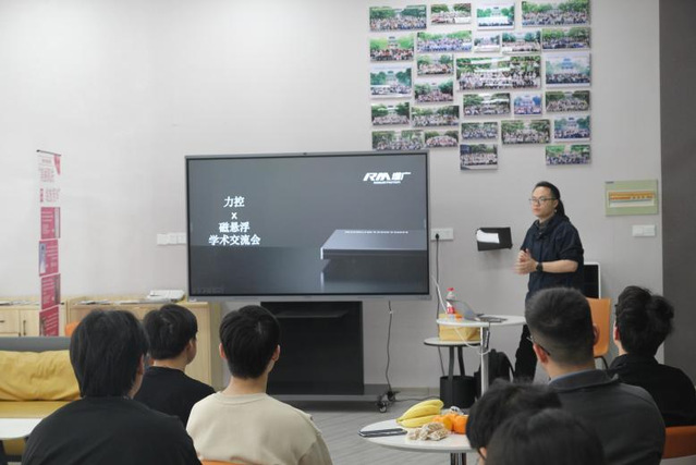 在讲座中,黄安杰首先向同学们介绍了增广智能科技有限公司的核心产品精密力控型电动执行器和平面磁悬浮系统。随后黄安杰深入分析了平面磁悬浮系统在磁场建模、实时控制算法、多轴协同控制、闭环力控等方面的技术难点及解决方案,并分享了磁悬浮技术在精密制造、生物医药等领域的实际应用案例,展示了该技术的广阔应用前景。