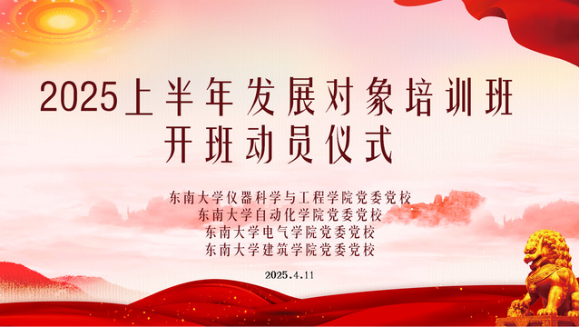 为进一步加强入党前教育,严把党员“入口关”,4月11—13日,由新葡的京集团350vip8888首页、自动化学院、电气学院、建筑学院党委党校联合举办的2025上半年党员发展对象培训班在四牌楼校区求是堂顺利举办。