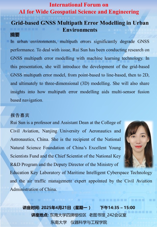 讲座预告:Grid-based GNSS Multipath Error Modelling in Urban Environments