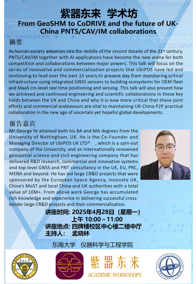 讲座预告:From GeoSHM to CoDRIVE and the future of UK-China PNTS/CAV/IM collaborations