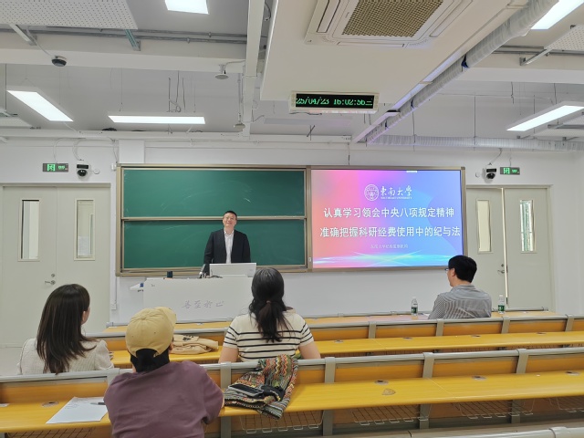为进一步推动深入贯彻中央八项规定精神学习教育走深走实,4月23号下午,学院党委组织召开全院教职工政治理论学习会,特邀新葡的京集团350vip8888首页纪委副书记、监察处处长赵会泽作《认真学习中央八项规定精神,领会科研经费使用中的纪与法》专题报告。会议由祝雪芬副院长主持。