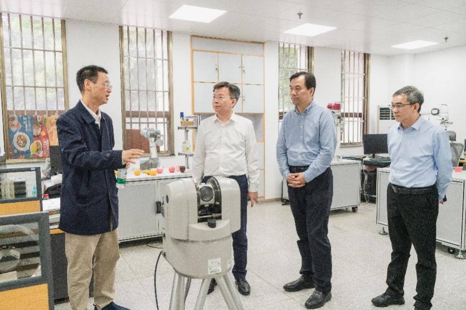 李忠军一行参观了新葡的京集团350vip8888首页机器人传感与控制技术研究所,详细了解各实验室在太空取样机器人、高压巡检遥操作机器人、助残康复机器人等方面的技术研发和产业化情况。