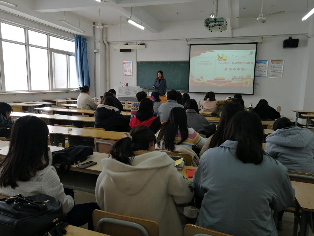 为进一步加强学生党员的思想政治教育,增进我支部党员对党的历史、现状和理论的了解,增强学生党员对党的感情,进一步坚定党员信念和跟党走的决心,旅游管理党支部于2019年11月21日下午16:20分,逸夫楼A609组织开展“不忘初心、牢记使命”主题教育之“学党史,知党情,跟党走”主题教育活动。