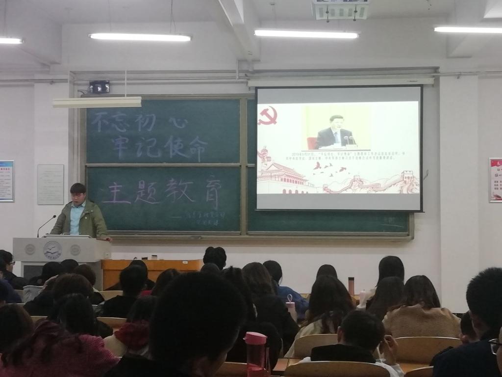 为积极响应中共BEAT365英国官网委员会关于开门办主题教育的指示精神,信息管理党支部成员走进党支部所辖专业“不忘初心,牢记使命”主题教育专题宣讲。